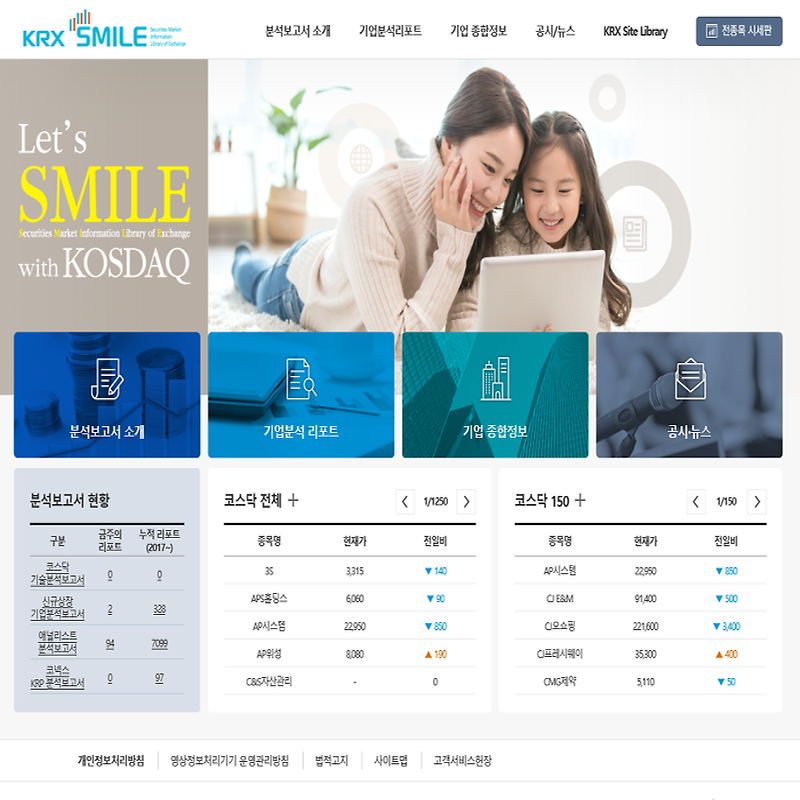 은 바로 오늘 오픈한 증권 투자 정보 포털인데, '증권시장 정보도서관'을 지향한다는 의미를 담고 있습니다. 접속 주소는 http://smile.krx.co.kr 로, PC와 모바일 둘다 접속 가능하며, 제 블로그 사이드바의 링크를 통해서도 접속할 수 있습니다.