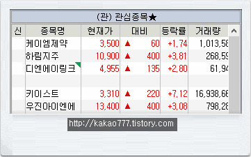 제 관심종목은 여러분들께 추천하는 주식이 절대 아닙니다. 단지, 제 블로그를 구독해주시는 분들과 소통을 위해 정보를 공유할 뿐, 그 이상도 그 이하도 아닙니다.