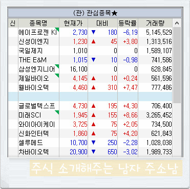 주소남의 3월 4주차 주식 관심종목(글로벌텍스프리 외 12종목)