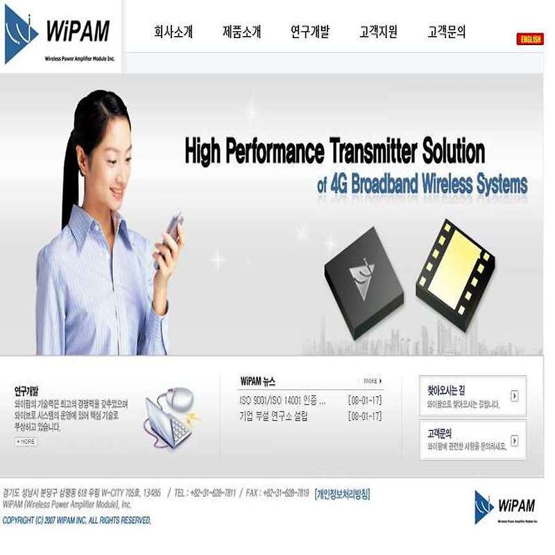 이동통신용 단말기에 탑재되는 전력증폭기 모듈(Power Amplifier Module, 약칭 PAM)을 주력으로 개발해 판매하는데, PAM은 이동단말의 전력사용 효율성과 통화시간을 좌우하는 핵심 부품으로 이동통신용 단말기 송신부의 미약한 신호를 증폭하여 안테나를 통해 기지국까지 송출하는 전력증폭 역할을 하는 부품입니다.