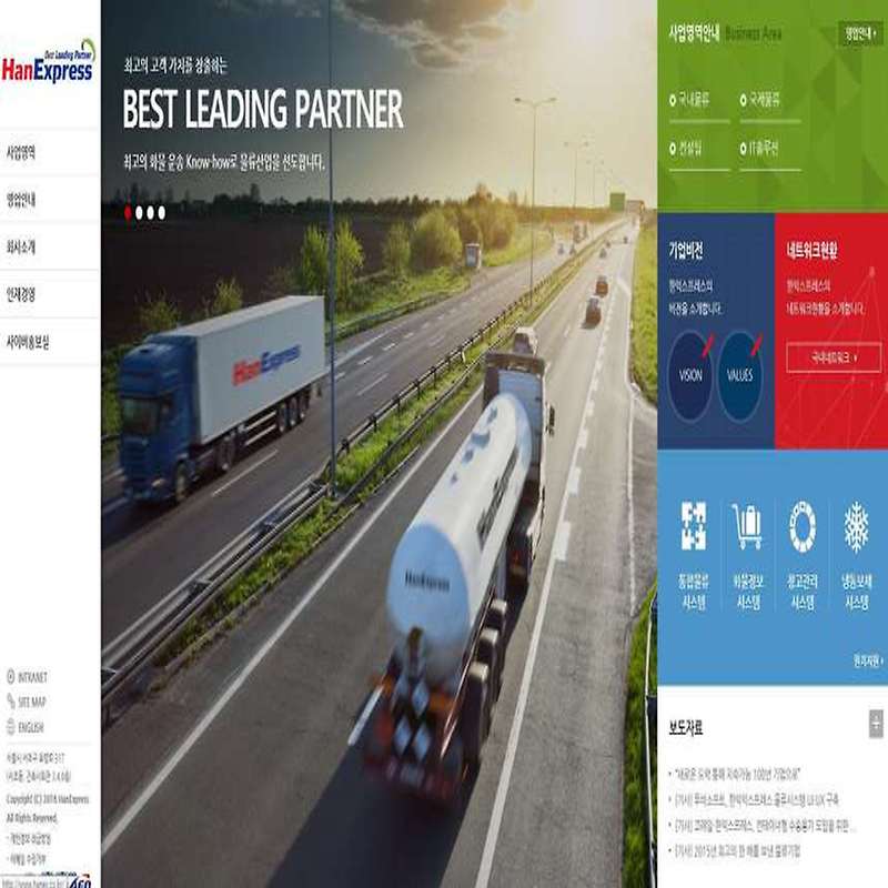 <한익스프레스 국내물류, 출처 : 한익스프레스 홈페이지>