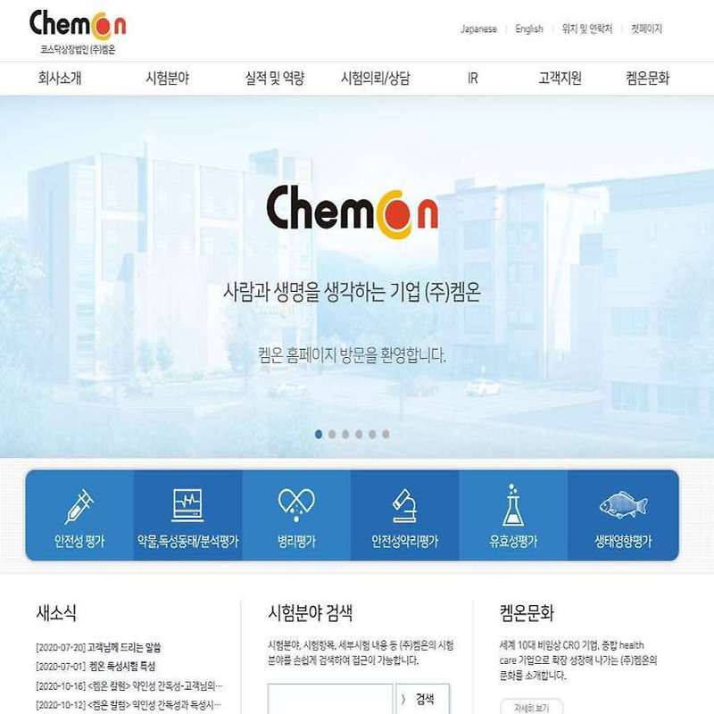 켐온은 신약이나 식품, 화학물질, 화장품 개발에 필수인 독성과 부작용 등의 안정성 등의 평가를 위탁 수행하는 비임상 CRO 기업으로 당국의 인허가가 필요한 물질에 대한 안정성평가와 안정성 약리평가, 유효성 약리 평가, 병리 및 분석 평가를 하고 있습니다.