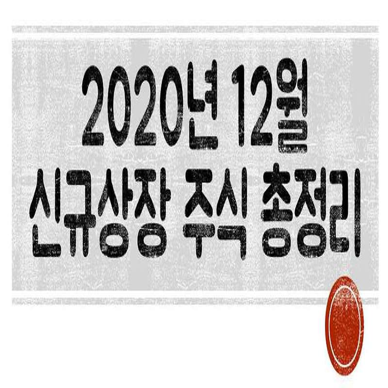 안녕하십니까 주식 소개해주는 남자 주소남입니다. 이번 시간에는 2020년 마지막 달인 12월 신규상장하는 주식을 총정리 해 보는 시간을 갖도록 하겠습니다.