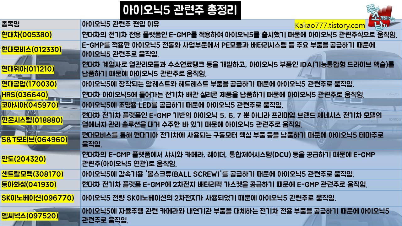아이오닉5 관련주 총정리(Feat. E-GMP)