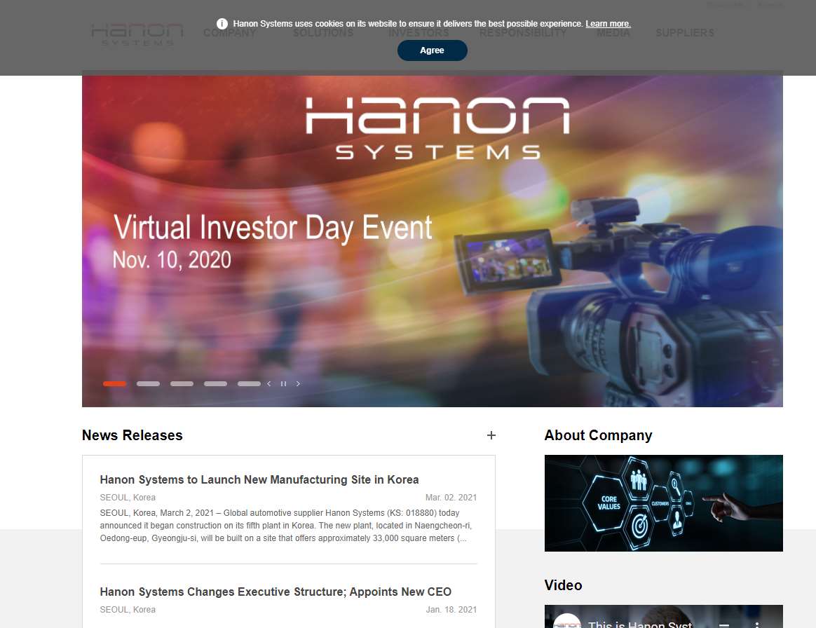 한온시스템(018880) : 자동차용 부품 및 시스템, 전자전기 기계기구용 및 기타 산업용 부품, 시스템의 제조, 수출입 사업 등을 하는 업체로 자동차의 열관리 시스템을 생산하는 단일 사업부를 운영하는 업체.