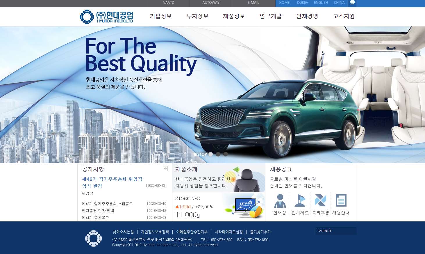 현대차(005380) : 자동차 및 자동차 부품을 제조 및 판매하는 완성차 제조 업체로 현대자동차 그룹에 속해있으며, 소형 SUV인 코나와 대형 SUV인 팰리세이드, 제네시스 G80 및 GV80 등을 출시.