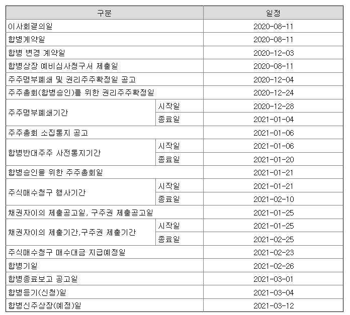 현대무벡스 상장 일정은 위와 같습니다. 2020년 8월 11일 합병계약일을 시작으로 3월12일 합병 신주 상장과 동시에 현재 엔에이치스팩14호가 현대무벡스로 종목명이 바뀌게 됩니다.
