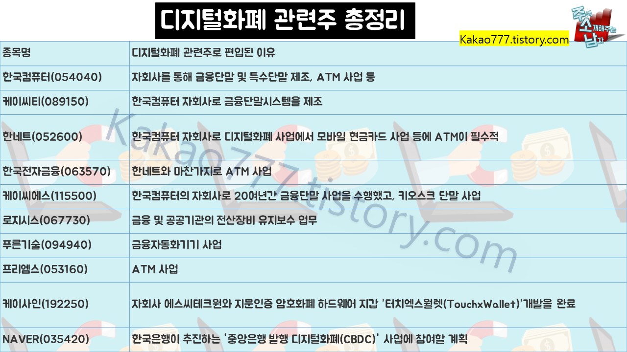 디지털화폐 관련주 총정리