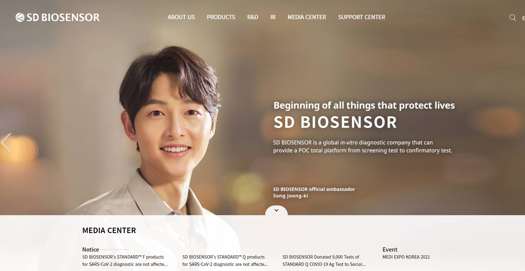 sd바이오센서는 상장 전부터 톱스타인 송중기를 모델로 하여 광고도 하고 있는데, 지난해 코로나19 진단검사 수요가 증가하면서 폭발적으로 성장한 업체입니다.