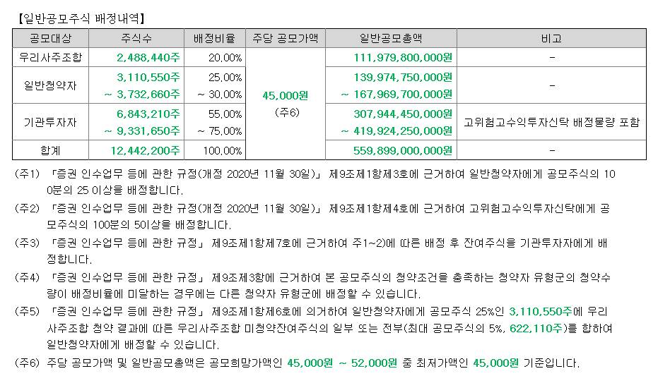 따라서 아직 sd바이오센서 수요예측 전이기 때문에 공모가는 확정되지 않았고, 각 증권사마다 일반투자자에게 얼마나 배정될지 정확한 확정치는 나오지 않은 상황입니다.