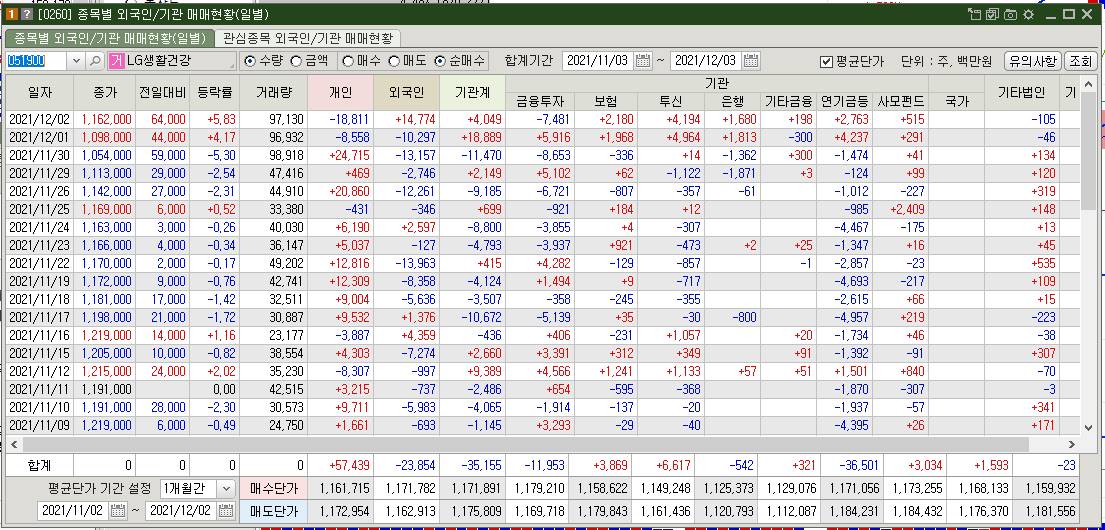 최근 100만원대 초반을 터치 후 이틀 연속 주가가 비교적 강하게 상승하고 있는데, LG생활건강 주가가 반등하는 이유는 저가 매수세 유립 및 외국인과 기관투자자의 동반 매수세 덕분인 것으로 보입니다.
