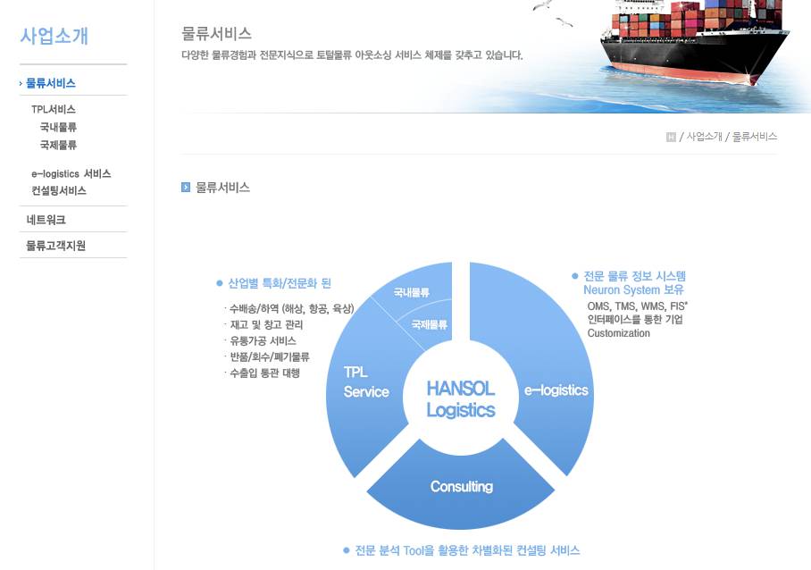 컨테이너운송사업과 트럭운송사업, 해상&항공 포워딩 사업, W&D사업, 물류시스템, 산업별 물류서비스 등을 제공하는 종합물류서비스(TPL) 사업을 하고 있습니다.