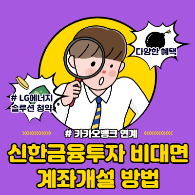 카카오뱅크를 연계하면 증권계좌 개설 20일 제한을 피할 수 있고, 다양한 혜택이 있기 때문에, 이번 기회에 신한금융투자 비대면 계좌개설 방법 꼭 체크하셔서 LG에너지솔루션 공모주 청약까지 성공하시길 바랍니다.