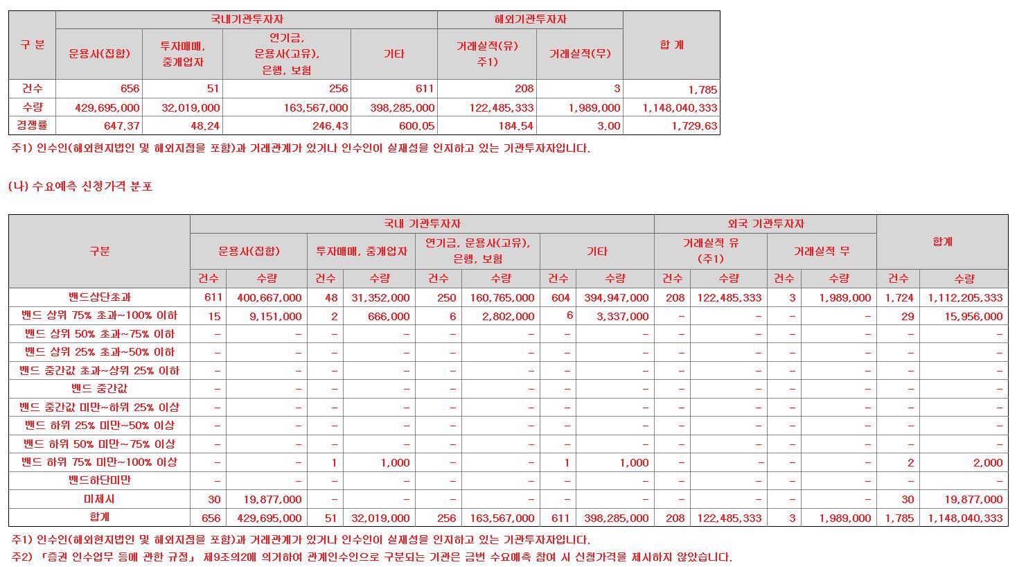 지투파워 수요예측 기관투자자 의무보유 확약 기관수 및 신청 수량