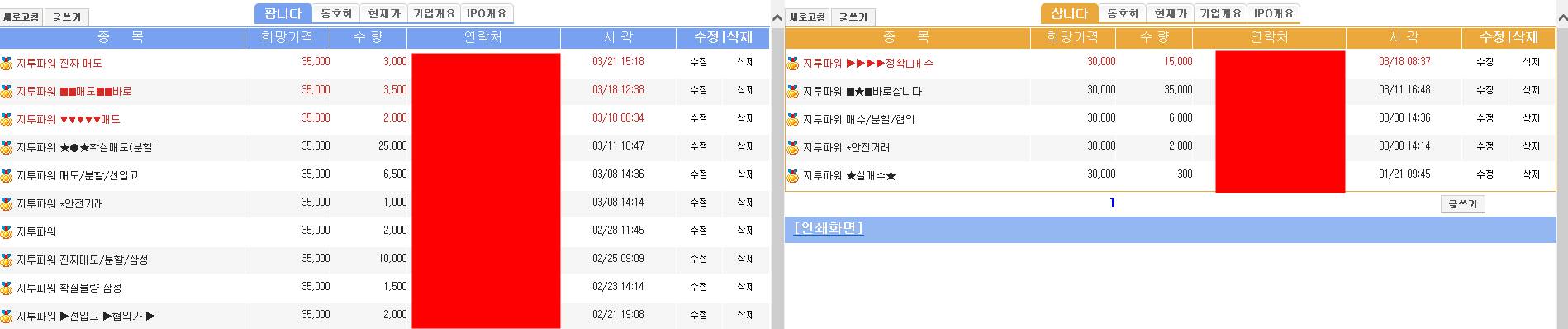 지투파워 장외가는 현재 38커뮤니케이션 기준, 매수는 3만원, 매도는 35,000원선 정도로 형성되어 있습니다.
