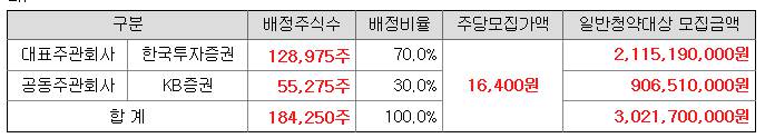 지투파워 일반청약자 배정 물량은 한국투자증권과 KB증권 각각 128,975주와 55,275주를 배정 받아 일반투자자 공모주 청약을 진행합니다.