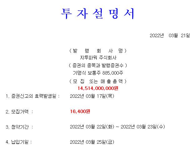 지투파워 공모와 공모가