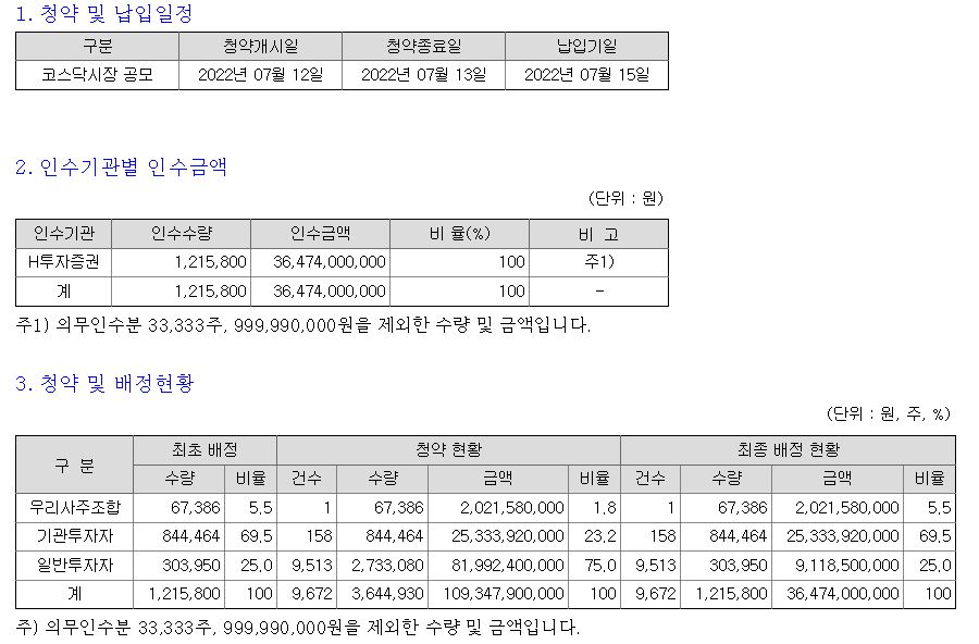 루닛 공모주 상장시 1,215,800주를 100% 신주모집으로 공모하고, 공모가는 30,000원으로 확정지었습니다.