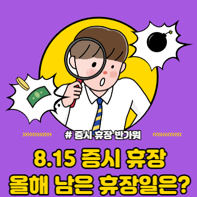 일전에 대체휴일 주식시장 휴장? 개장?포스팅에서 국가 공휴일은 증시 휴장일이라고 했던 적이 있는데, 8월 15일 광복절 역시 증시 휴장일이고, 만일 주말과 겹쳤을 경우에는 대체공휴일로 지정되어 증시 역시 휴장입니다.