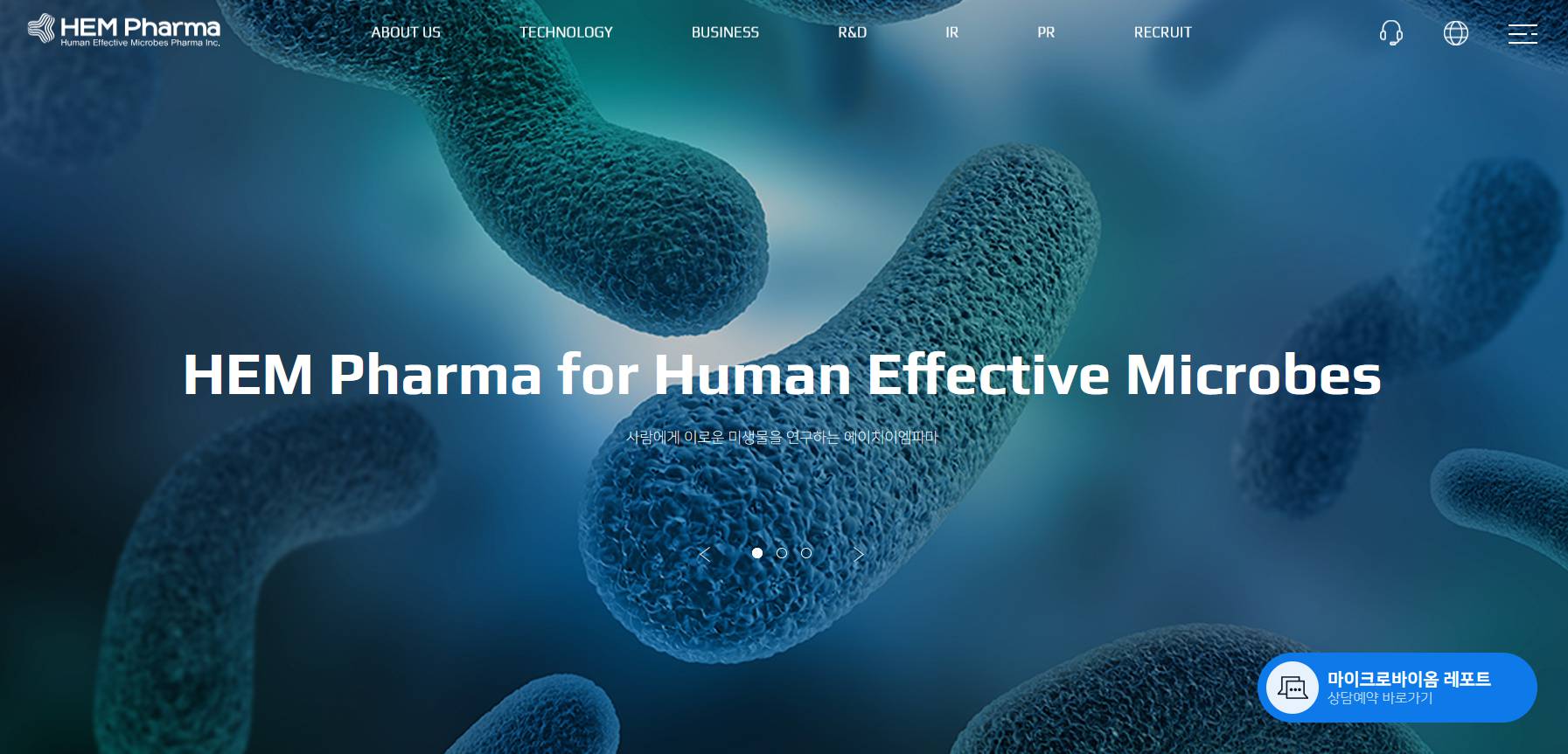 에이치이엠파마는 마이크로바이옴 헬스케어 전문 기업으로 개인의 분변 시료를 통해 장내 마이크로바이옴 시뮬레이션 기술(PMAS)을 기반으로 맞춤형 헬스케어 서비스, 생균 기반 의약품(LBP) 디스커버리 플랫폼 사업을 하고 있습니다.