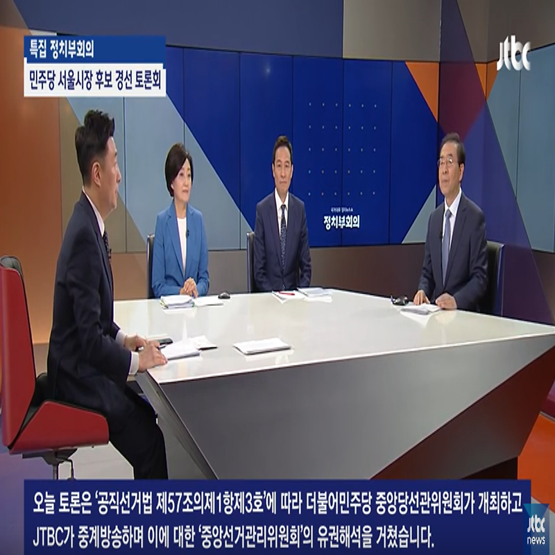 앞서 안내해드린바와 같이 JTBC 정치부회의 특집으로 서울시장 후보 토론회를 개최했습니다. 개인적으로 서울 시민도 아니고, 당내의 경선까지는 크게 관심이 없지만 아무래도 현재의 집권 여당 후보이기 때문에 서울시장 당선 가능성이 가장 높고, 무엇보다 미세먼지 정책에 관해 관심이 매우 높기 때문에 생방송을 보지 못했지만 후에 유튜브 영상으로 풀영상을 시청했습니다. 풀 영상은 아래에서 보실 수 있습니다.